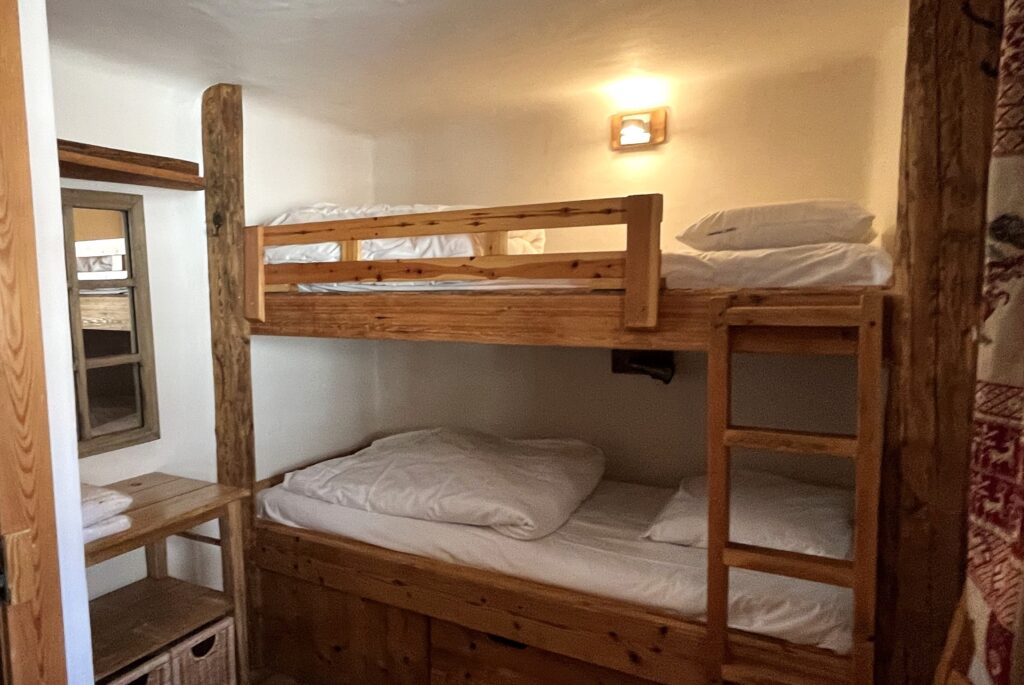 Étage 1 : 4 chambres pour deux personnes, chacune avec sa salle d’eau. Les lits peuvent être juxtaposés ou séparées. La plus petite chambre a des lits superposés -Toilettes.