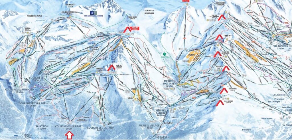 Deux remontées mécaniques mènent à l’immense domaine des Trois Vallées, le plus grand domaine skiable interconnecté du monde, avec ses 650 km de pistes, et de la neige artificielle sur toutes les pistes inférieures. La télécabine spacieuse PRAZ vous porte en 6 minutes à Courchevel 1850. (elle reste ouverte jusqu’à 23 heures – descente gratuite). Le télésiège FORET permet d’accéder à La Tania et à Méribel, par le col de la Loze.